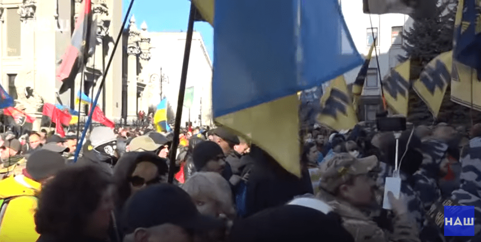When they reached the building of the President’s Office, the demonstrators shouted: “No capitulation!” and “Glory to the volunteers”, among other slogans. They demanded the President of Ukraine, the Government and the Verkhovna Rada to “end the capitulation policy” and refuse “any agreements with the enemy at the expense of Ukraine’s interests”.